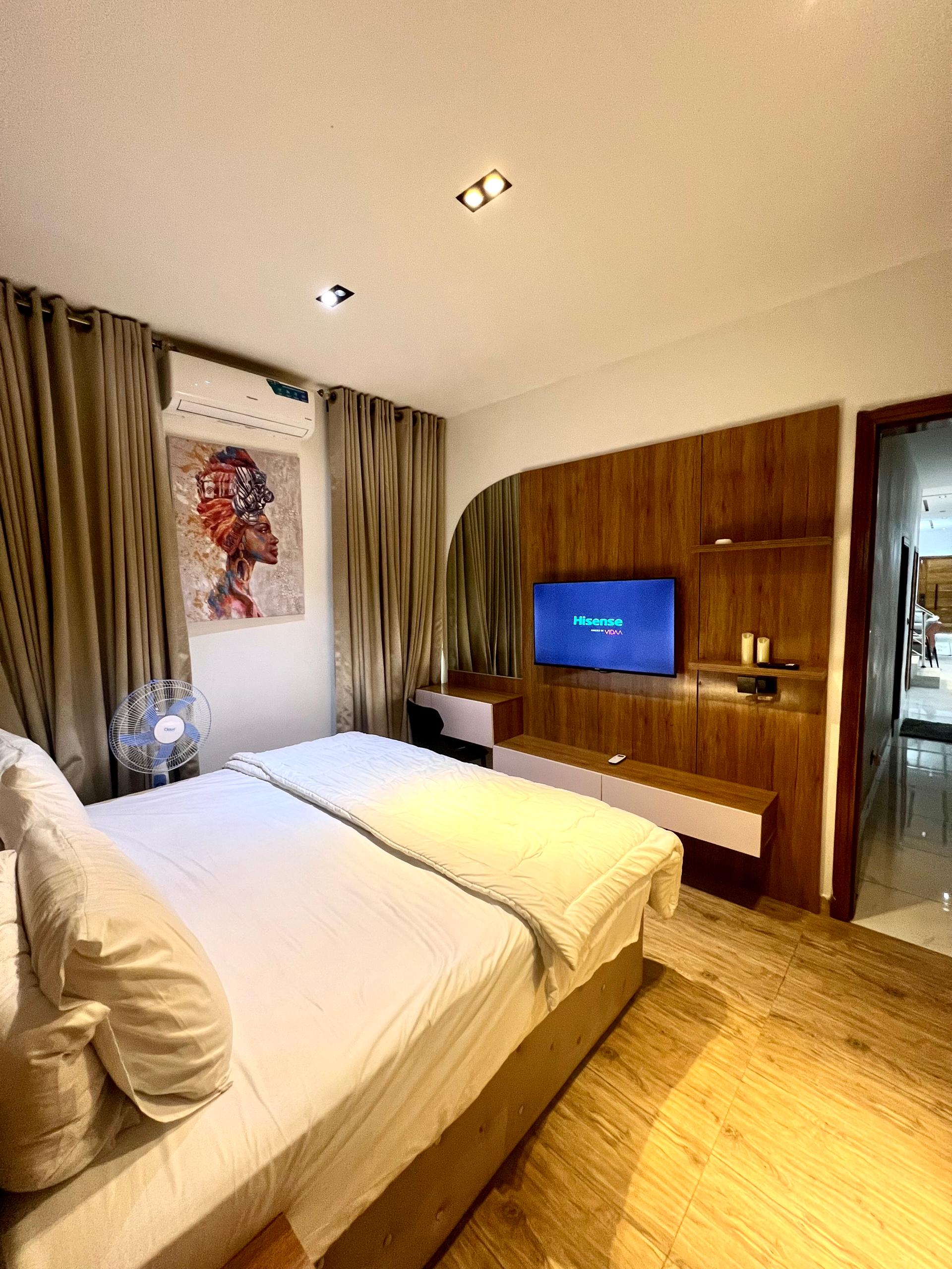 Premium serviced apartments with 24/7 power, PS5, snooker, DSTV, Netflix/ Amazon prime, WiFi & daily housekeeping.